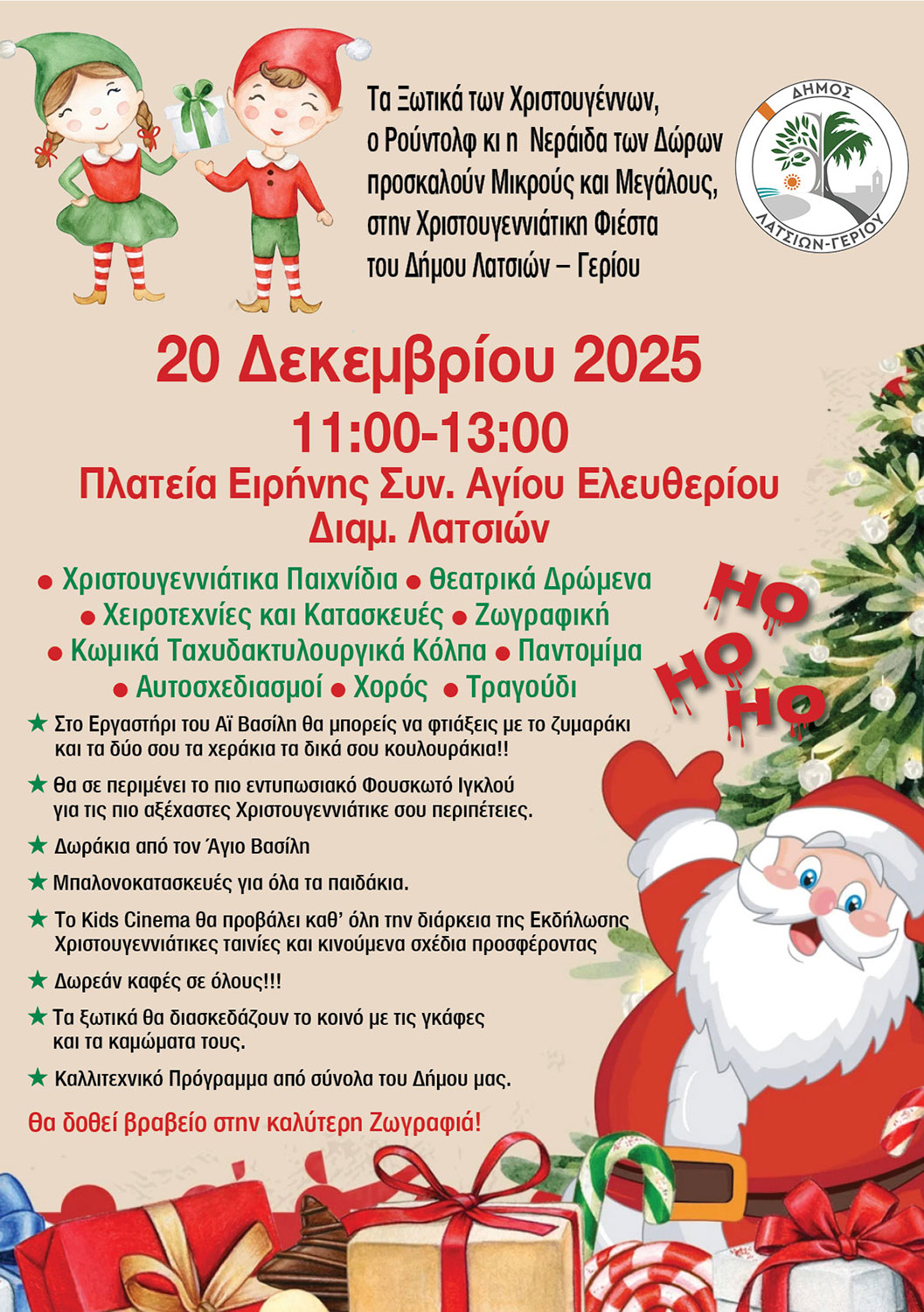 « Χριστουγεννιάτικη Γιορτή Δήμου Λατσιών-Γερίου,  Σάββατο 20 Δεκεμβρίου 2025»