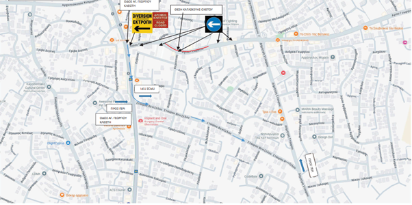 Παρακαλούνται οι οδηγοί όπως χρησιμοποιούν παρακείμενους δρόμους σύμφωνα με τις κατευθυντήριες πινακίδες, βάσει του πιο κάτω σχεδιαγράμματος το οποίο έχει αναρτηθεί στην ιστοσελίδα www.latsia-geri.eu καθώς και στα μέσα Κοινωνικής Δικτύωσης του Δήμου.