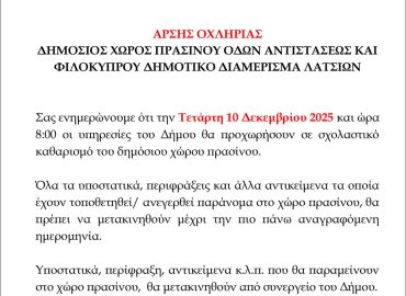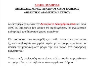 ΑΝΑΚΟΙΝΩΣΗ Ο Δήμος ενημερώνει το κοινό ότι σήμερα 02/12/2025 στις 16:00, θα πραγματοποιηθεί ελεγχόμενη έκρηξη από την…