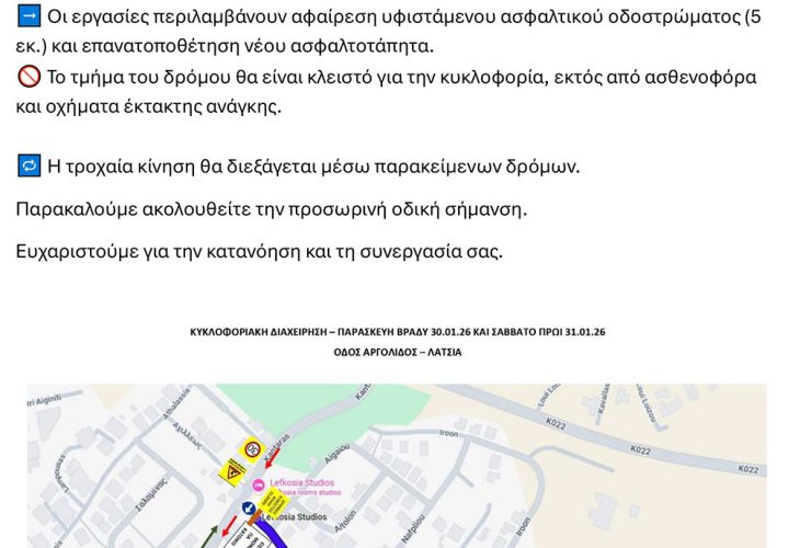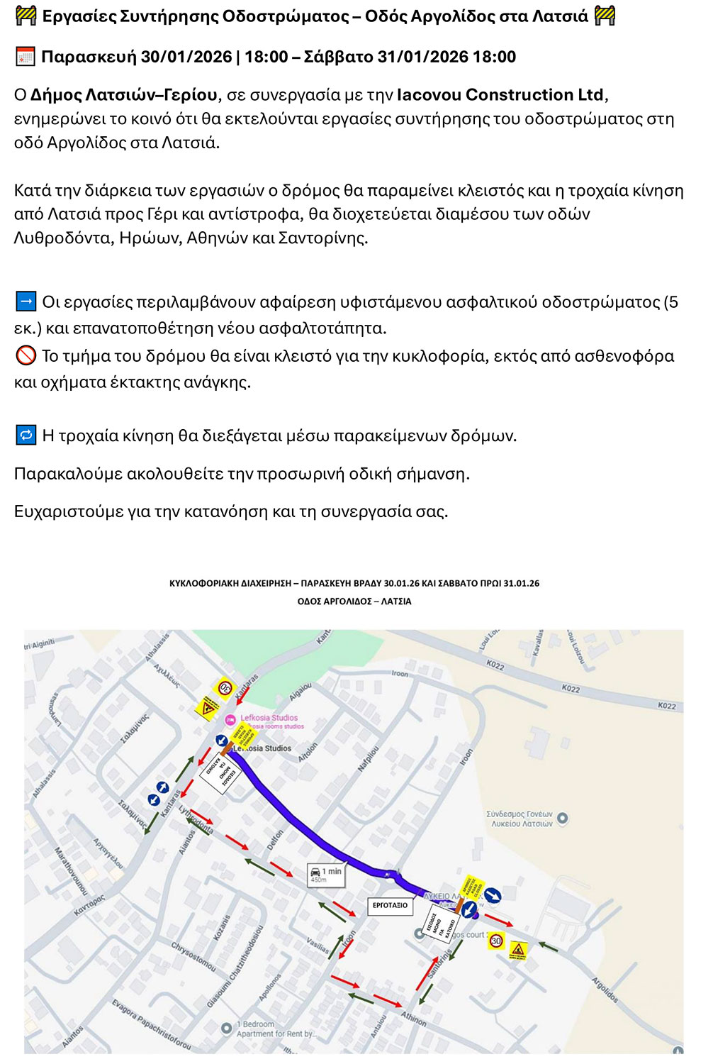 Κλείσιμο Δρόμου Αργολίδος - Δήμος Λατσιών - Γερίου