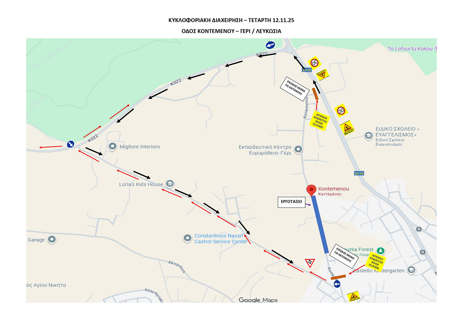 🕘 Ο δρόμος θα παραμείνει κλειστός από τις 09:00 π.μ. έως τις 16:00 μ.μ. της ίδιας ημέρας.